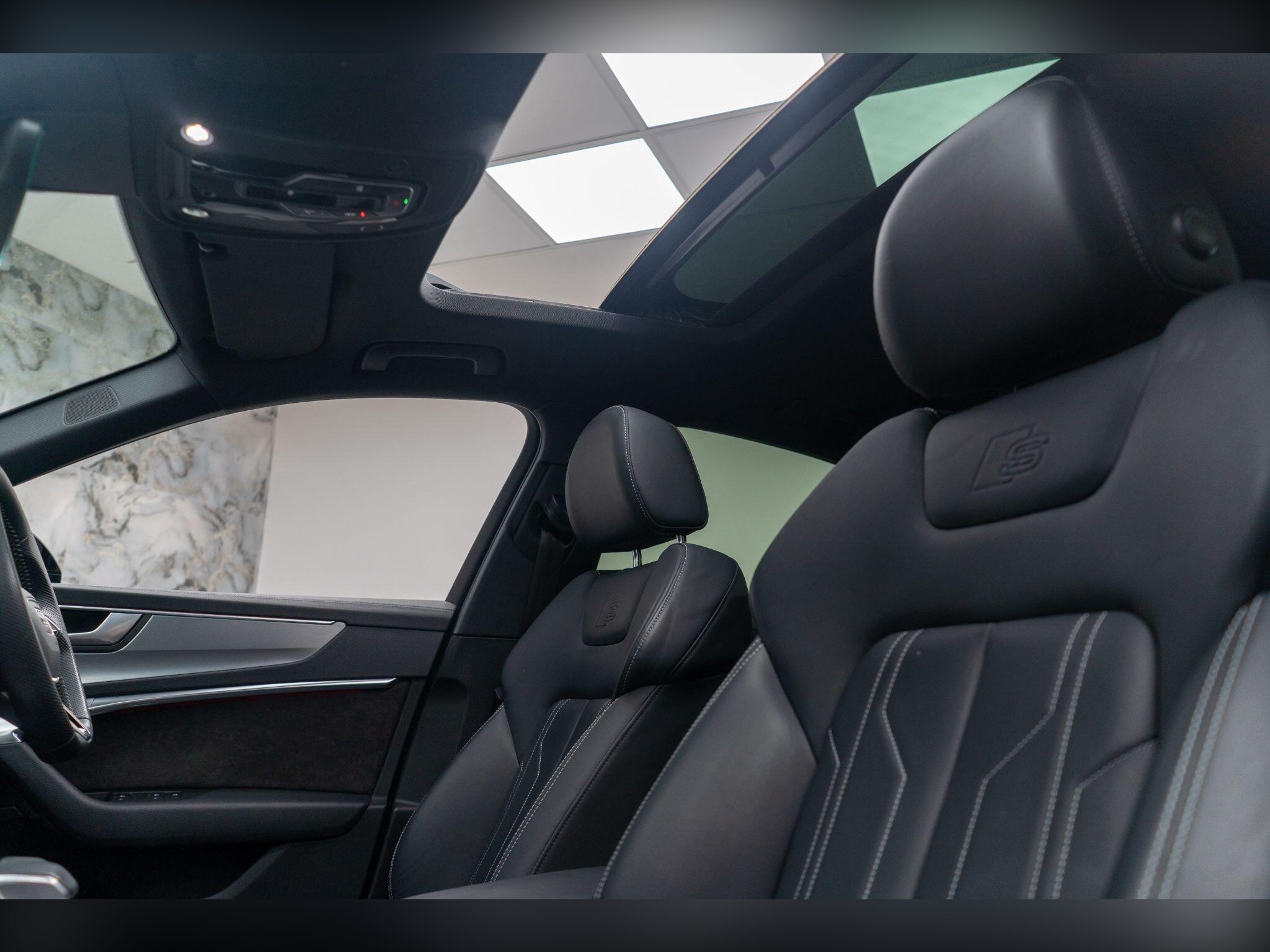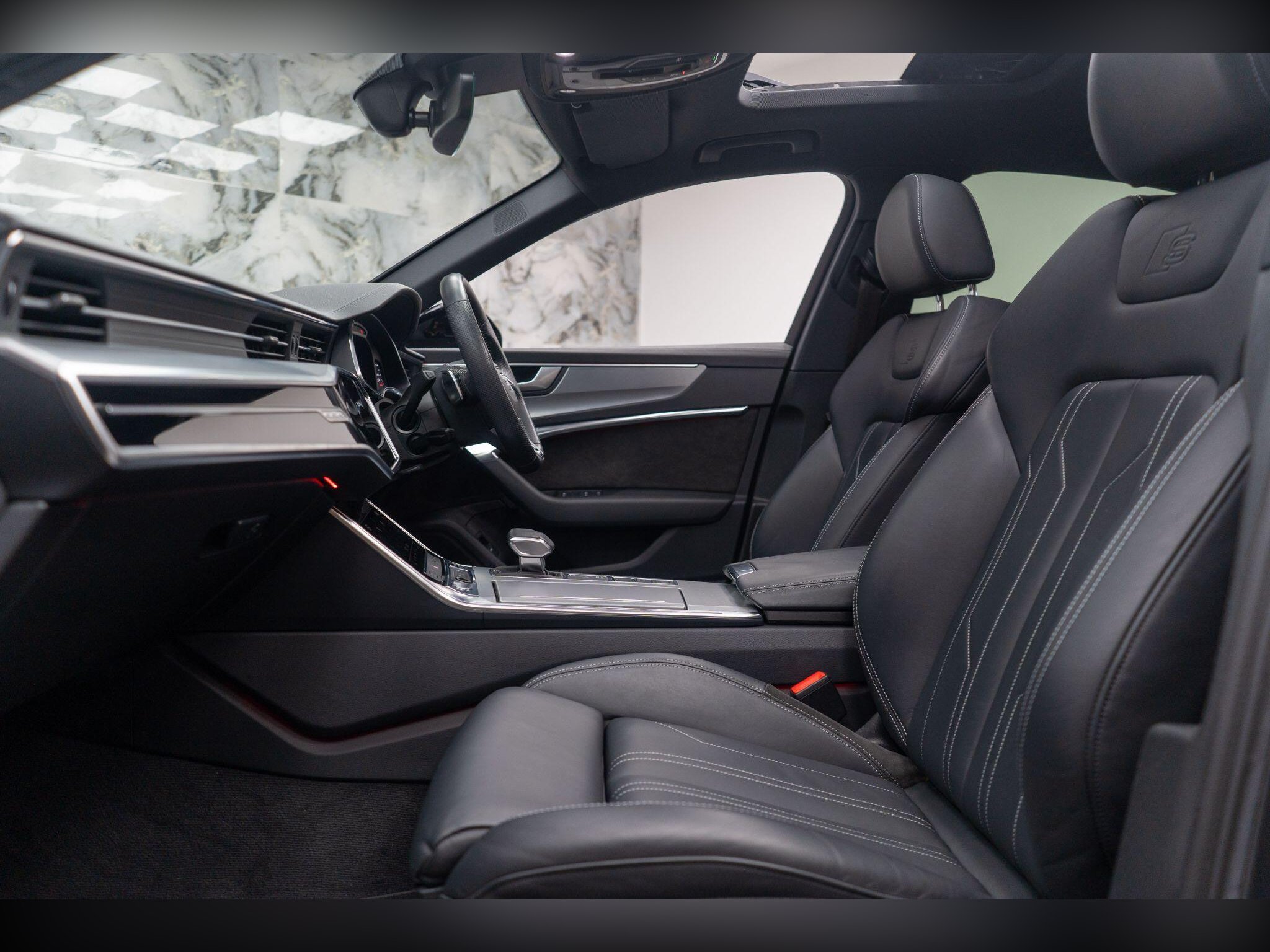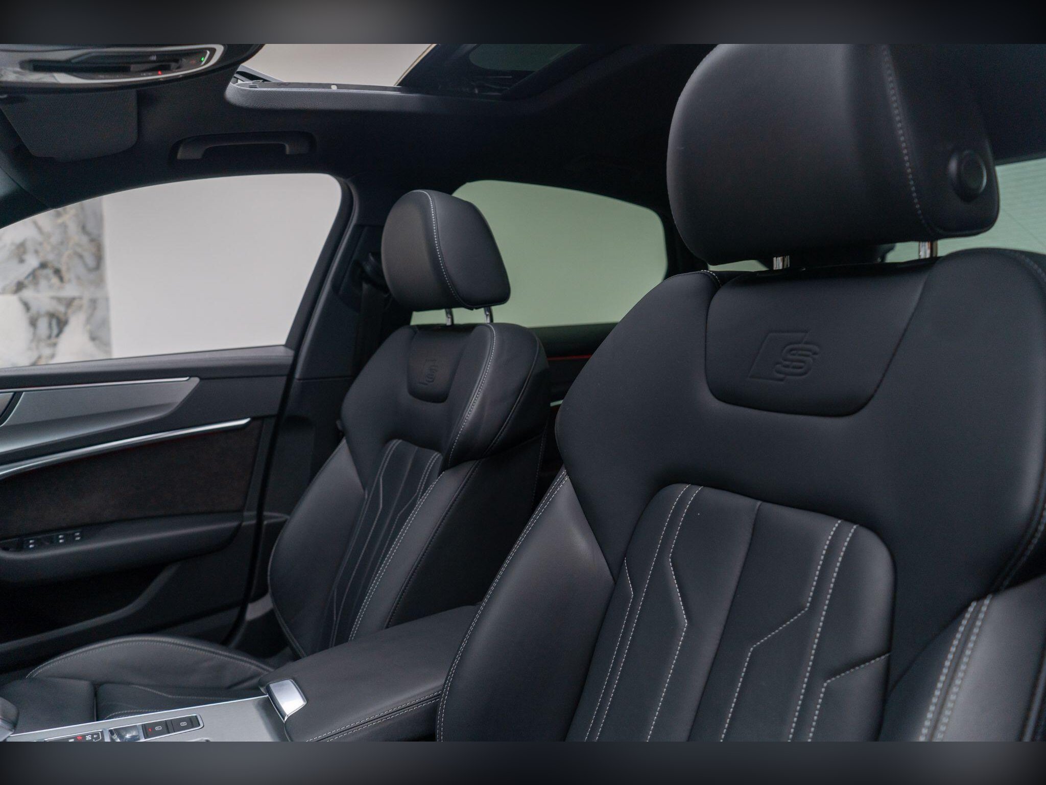 - Valcona Leather - Sports Seats with S Embossed Logo - Black with Rock Grey Stitching
