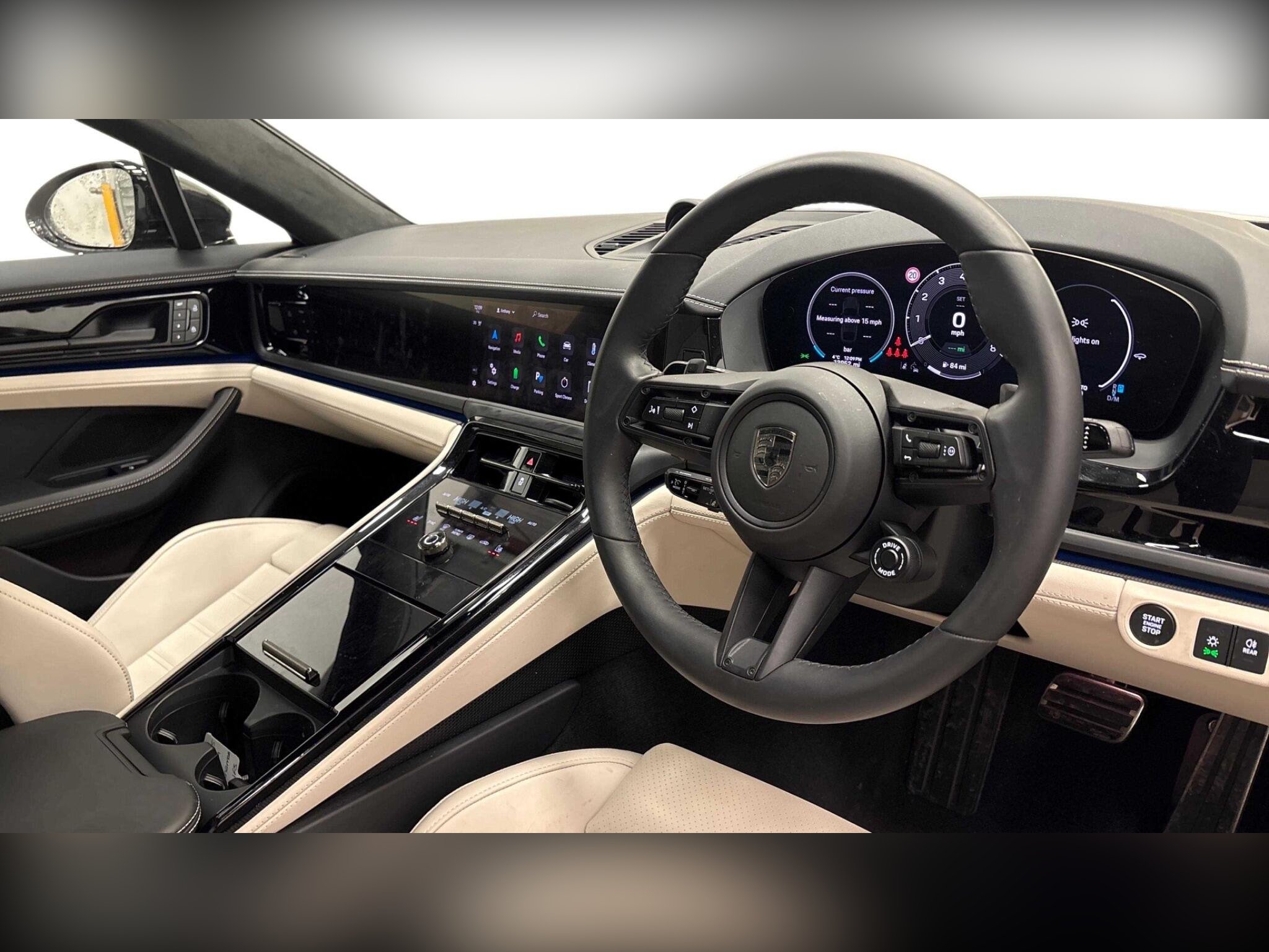 The cabin is a sanctuary of high-tech luxury, featuring the 4+1 seating configuration for added versatility and the Panoramic roof system that floods the interior with natural light. Every detail has been considered, from the iconic Porsche Crest embossed on the headrests to the convenience of Soft-close doors. For the tech-savvy passenger, it comes equipped with Preparation for Porsche Rear Seat Entertainment, ensuring a first-class experience for everyone on board.