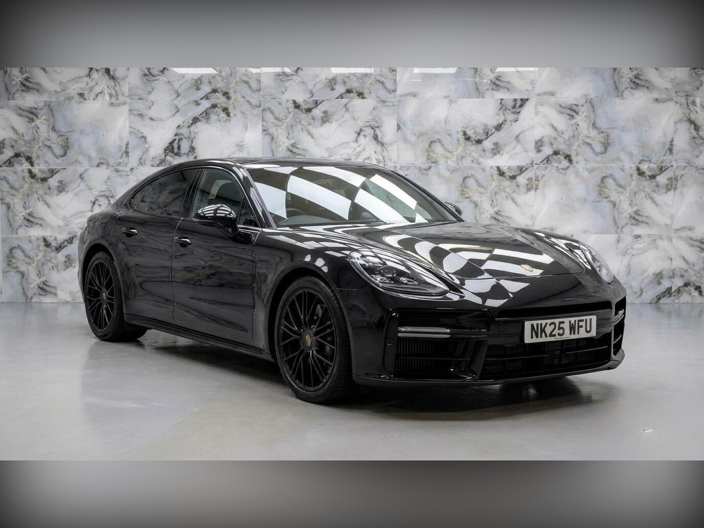 This Porsche Panamera Turbo E-Hybrid is a masterclass in executive sportiness, blending cutting-edge hybrid performance with a sinister, "murdered-out" aesthetic. Finished with the SportDesign Package and Side Window Trims in high-gloss black, the exterior is further sharpened by 21-inch wheels and sports exhaust tailpipes all finished in matching dark tones. The Tinted HD-Matrix LED Headlights and Privacy Glass complete its aggressive, low-profile stance.